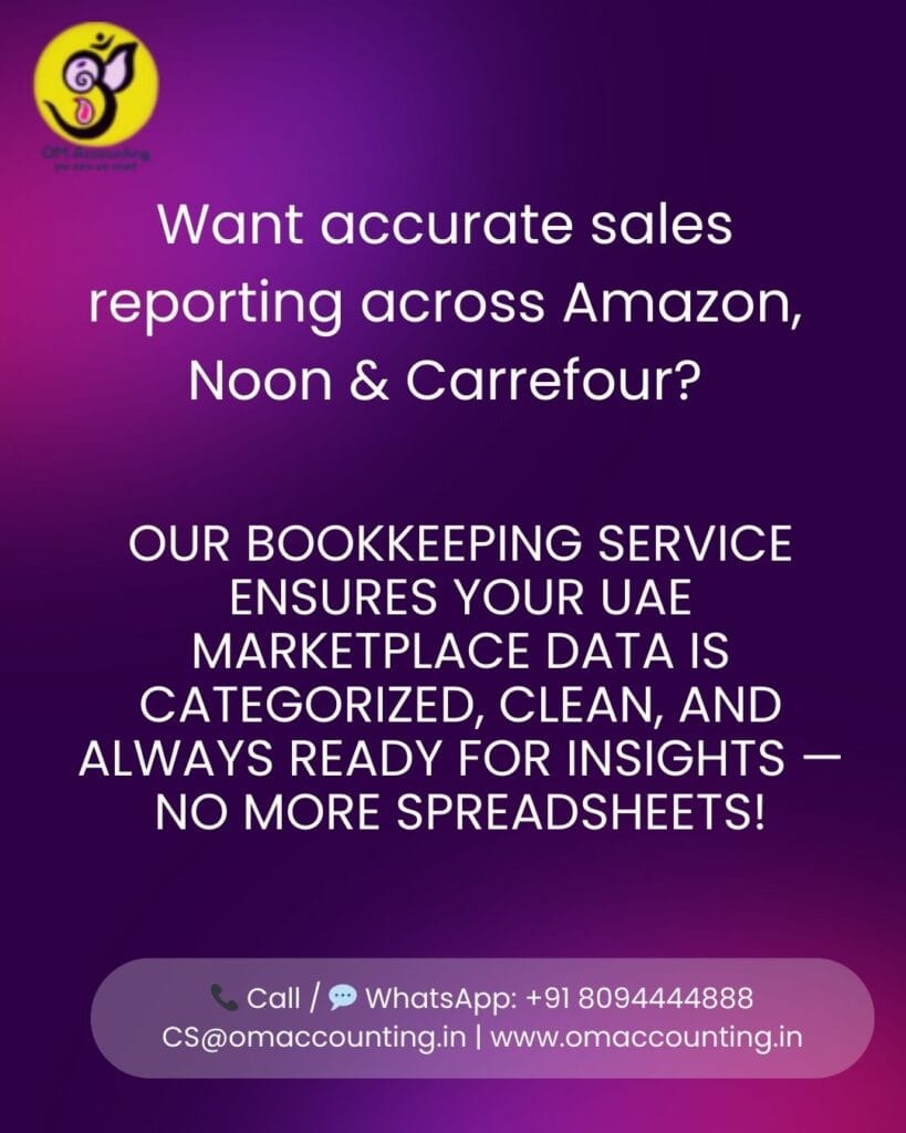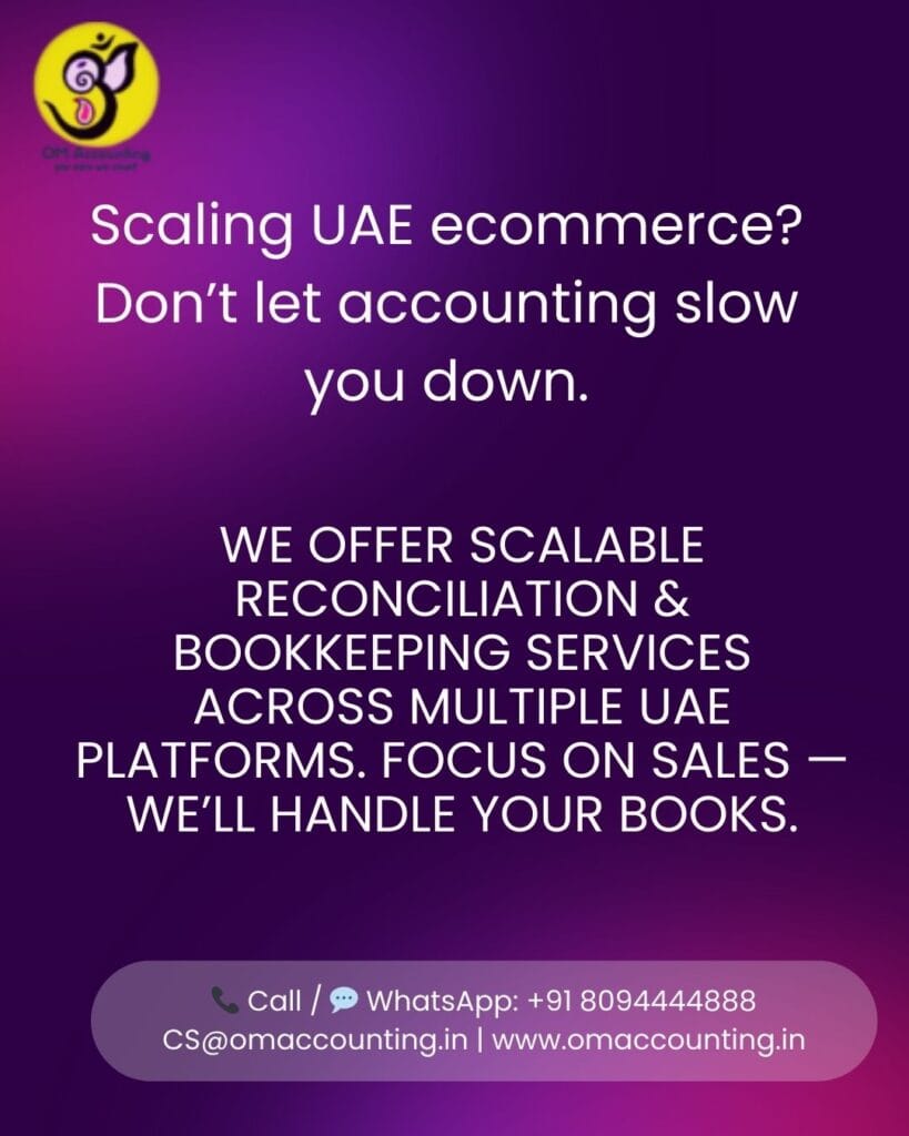 π Scaling UAE ecommerce? Donβt let accounting slow you down. We offer scalable reconciliation & bookkeeping services across multiple UAE platforms. Focus on sales β weβll handle your books. CS@omaccounting.in | www.omaccounting.in #ScaleWithClarity #UAEAccounting #OmAccounting #EcommerceSupport